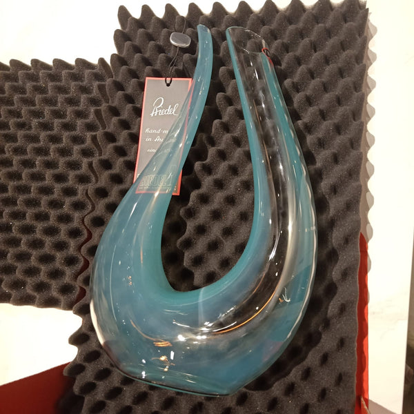 Boasting a beautiful but challenging design, a standard 750ml bottle of wine will fill to the decanters widest point allowing maximum aeration. Each decanter is made by hand so each decanter is totally unique. Wine is poured into the decanter through the wide opening at one end and decanted through the narrow opening at the other end.
