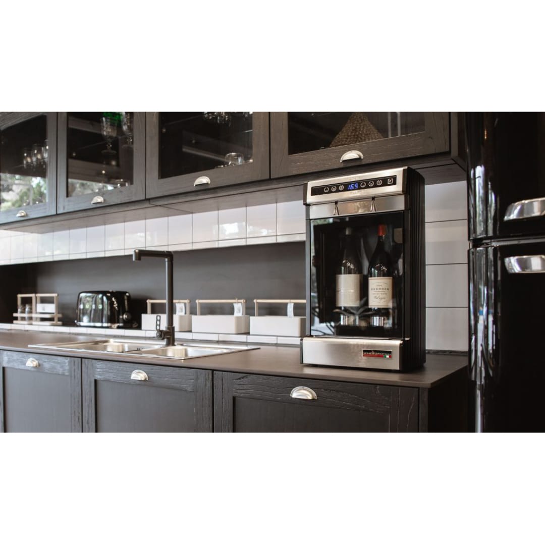 Mia, alongside preserving and serving wine, keeps it at the ideal temperature with a maximum power consumption of 80w.