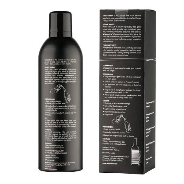 Winesave is heavier than air and sinks below the air in the bottle to form a perfect layer of protection just above the wine, reducing oxygen absorption and oxidation.